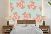 Behang - Fotobehang Zomer - Monstera - Lichtblauw - Breedte 350 cm x hoogte 350 cm