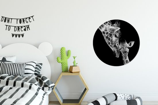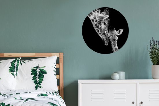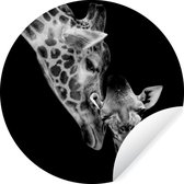 Behangcirkel - Zelfklevend behang - Wilde dieren - Giraffe - Familie - Zwart wit - 50x50 cm - Behangsticker - Behangcirkel zelfklevend - Behangcirkel dieren