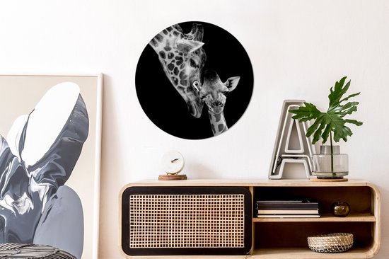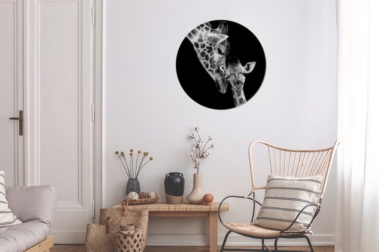 Versier jouw interieur met deze behangcirkel! Op het zelfklevende behang is een zwart-wit afbeelding van een moeder giraffe met haar kind te zien. Deze behangcirkel is daarnaast van hoge kwaliteit..