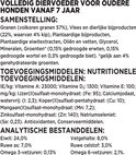- Analytische Bestanddelen: Eiwit: 24,0%, Vetgehalte: 8,0%, Ruwe as: 7,0%, Ruwe celstof: 3,0%, Omega 3-vetzuren: 0,13%, Omega 6-vetzuren: 2,1%.