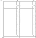 De kast is gemaakt van spaanplaat melamine. De kast heeft een strakke vormgeving met verdeelde vlakken op de voorkant. Deze schuifdeurkast met twee deuren heeft achter elke deur een vak met bovenin een legplank. Onder de legplank zit een roede waardoor je heel veel kleding hangend kwijt kunt.