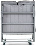 Het opklapbed is inclusief bodem (metalen frame) en een 13 cm dik polyether matras. Het bed kan worden in- en uitgeklapt zonder dat je het hoeslaken eraf hoeft te halen. Je hebt het bed dus altijd gereed staan voor die onverwachte logé. Zo ben je in één moeite klaar. Zodra het vouwbed uitgeklapt staat is het metalen frame niet meer zichtbaar. Ingeklapt beslaat het bed slechts een ruimte van 47 cm.