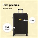 De ruimbagage reiskoffer heeft een inhoud van 95 liter en een afmeting van 76 x 49 x 29 cm. De binnenkant is voorzien van handige vakken en inpak riemen om je spullen georganiseerd te houden.