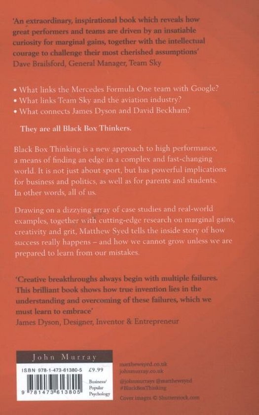 Black Box Thinking is a new approach to high performance, a means of finding an edge in a complex and fast-changing world. It is not just about sport, but has powerful implications for business and politics, as well as for parents and students. In other words, all of us.