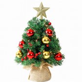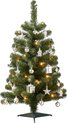 Hoogte: 90 cm Diameter: 50 cm LED-verlichting: multicolour licht Kerstornamenten: 26 stuks (inclusief) Voedingstype: werkt op 3 AA batterijen (exclusief) Aantal takken: 94