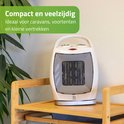 Deze oscillerende keramische kachel combineert stijl en efficiëntie. Dankzij de 3 instelbare standen en de oscillatiefunctie biedt deze kachel warmte op maat, afgestemd op jouw behoeften. Het compacte ontwerp maakt het apparaat perfect voor gebruik in een caravan, onder een voortent, onder een luifel of in andere kleine ruimtes.
