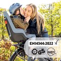 Het achterzitje is voorzien van het EASY montage systeem voor snelle montage én om het zitje eenvoudig op een andere fiets te zetten. Uiteraard voldoet de ONE aan alle geldende veiligheidsnormen voor kinderzitjes.