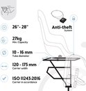 De Bobike ONE Maxi wordt geleverd inclusief EASY montage voor bevestiging op de bagagedrager. EASY past op ISO 11243 goedgekeurde bagagedragers met een breedte tussen 120 en 175 mm en ronde buizen met een diameter tussen 10 en 16 mm. EASY is speciaal ontworpen om zowel op e-bikes als op gewone fietsen te passen.