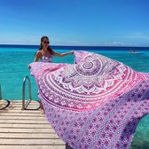 Geschreven bij: Bohemida Roundie XXL Groot Vakantie Strandlaken 220x235cm - XXL Pink Ombre Mandala Strandkleed - 100 % Duurzaam Katoen