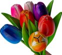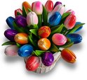 Bos houten tulpen - steel 33cm - mix van 6 kleuren - 20 tulpen in een bos - verwelken nooit!
