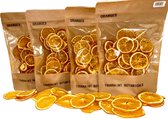 - De sinaasappelschijfjes worden zorgvuldig gesneden en gedroogd in een dehydrator voor een intense smaak en geur.