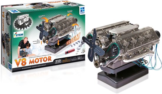Motor Lab Bouwmodelset, miniatuur bouwpakket met werkende motor. Geschikt voor kinderen én volwassenen!