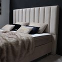 - Velvet beige van kleur en meegeleverd hoofdbord in dezelfde kleur