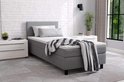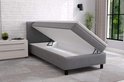 Boxspring Met opbergruimte Erolla - 90x200 cm eenpersoons - grijs stof - zetelsenbedden - Compleet bed met matras en topper - bed storage