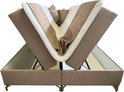 - Kleur en Materiaal: Uitgevoerd in een luxe taupe velvet stof voor een elegante en moderne uitstraling. Het gecapitonneerde hoofdbord voegt een vleugje klassieke verfijning toe.