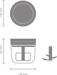 Laat dat mes maar in de la, de Brabantia Tasty+ Handmatige Hakmolen met Trekkoord is gemaakt voor het fijnhakken van uien, wortelen of noten! Deze groentesnijder heeft drie scherpe roestvrijstalen messen die draaien als je aan de ring trekt. Zelfs het hardste voedsel snij je zo moeiteloos fijn. Dit handige keukenhulpje heeft zelfs een garde waarmee je in een handomdraai slagroom en eieren klopt of sauzen mixt. Hak, hak, hoera!