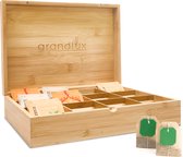 Dankzij het transparante venster in het deksel zie je in één oogopslag welke smaken je in huis hebt. De 12 vakken bieden ruimte voor een uitgebreide variatie aan thee, perfect voor de echte theeliefhebber of het ontvangen van gasten.