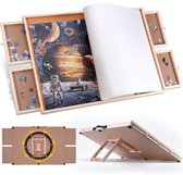 BREND BR-2217 Puzzelplaat voor 1500 Puzzelstukjes met 6 Lades – Puzzelbord met Opbergsysteem - Puzzelmat van Hout – Puzzeltafel inclusief Afdekplaat