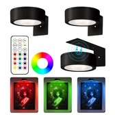 Brightify - LED Wandlamp voor Binnen - 2 Stuks - Wandlamp Binnen - Nachtlampje - Oplaadbaar - Afstandsbediening - Draadloos - Dimbaar - Spots - Smart Lamp - Zonder Boren - 360° verstelbaar - Zwart