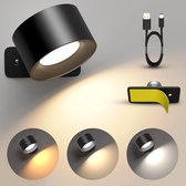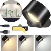 Led Wandlamp Binnen Oplaadbaar - Oplaadbare Wandlamp - Draadloos – Leeslamp - Dimbaar - Touch Bediening – Zonder boren – 360° rotatie - Zwart