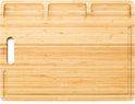 De Budu Snijplank XL combineert functionaliteit, duurzaamheid en luxe. Deze grote snijplank, vervaardigd uit 100% FSC®-gecertificeerd bamboe, is niet alleen sterk en slijtvast, maar biedt ook een elegante uitstraling die in elke keuken past. Gebruik de plank als snijplank, borrelplank, tapasplank of broodplank en ervaar de veelzijdigheid in uw dagelijkse keukenroutine. Dankzij de diepe sapgoot aan beide zijden en handige compartimenten is deze snijplank ook ideaal voor het serveren van borrelhapjes.