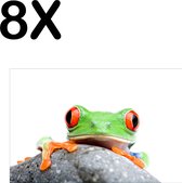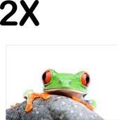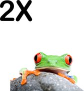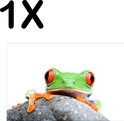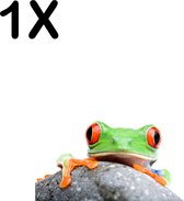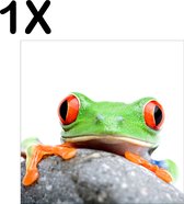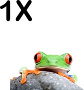 BWK Textiele Placemat - Exotische Kikker Kijkt Nieuwsgierig over een Steen - Set van 1 Placemats - 45x30 cm - Polyester Stof - Afneembaar