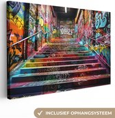 Canvas schilderij 120x80 cm - Wanddecoratie Abstract - Neon - Design - Kleurrijk - Graffiti - Muurdecoratie woonkamer - Slaapkamer decoratie - Kamer accessoires - Schilderijen op canvas
