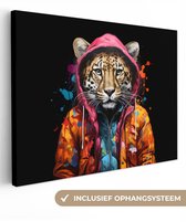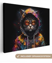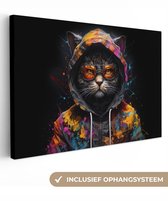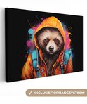 Canvas schilderij 140x90 cm - Wanddecoratie Graffiti - Wasbeer - Jas - Zwart - Muurdecoratie woonkamer - Slaapkamer decoratie - Kamer accessoires - Schilderijen op canvas