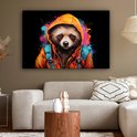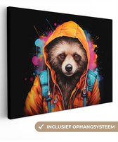 Canvas schilderijen - Graffiti - Wasbeer - Jas - Zwart - Woonkamer - Slaapkamer