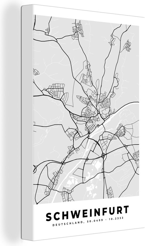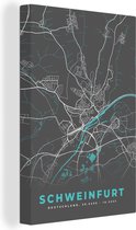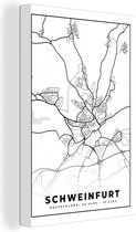 Canvas Schilderij Duitsland - Plattegrond - Kaart - Schweinfurt - Stadskaart - 40x60 cm - Wanddecoratie