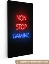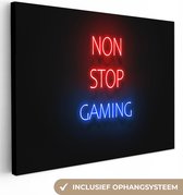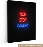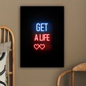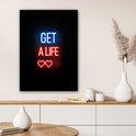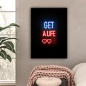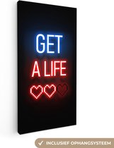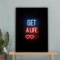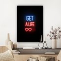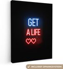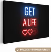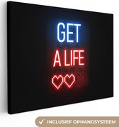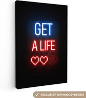 Canvas schilderij 60x80 cm - Wanddecoratie Gaming - Tekst - Get a life - Neon - Zwart - Muurdecoratie game room - Gaming kamer decoratie - Gameroom accessoires - Schilderijen