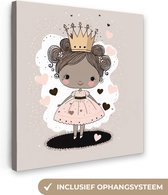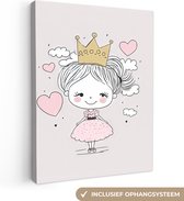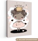 Canvas Schilderij Prinsessen - Jurk - Hartjes - Pastel - Meisjes - 90x120 cm - Wanddecoratie