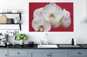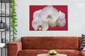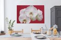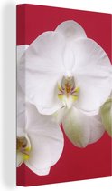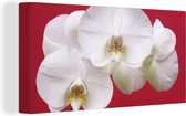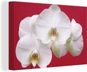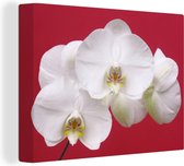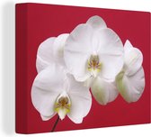 Canvas Schilderij Witte orchidee op rood - 120x80 cm - Wanddecoratie