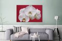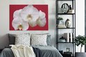 Canvas schilderijen - Witte orchidee op rood - Woonkamer - Slaapkamer