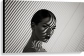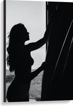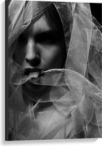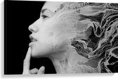Canvas - Vrouwelijke Leeuwenkop (zwart/wit) - 90x60cm Foto op Canvas Schilderij (Wanddecoratie op Canvas)