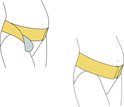 - Doe de 2 lange stukken klittenband onder je buik door en sluit over elkaar heen met het klittenband.