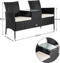 Casaria Polyrattan Tuinbank - Incl. Kussen Tafel 143x55x88 cm Zwart