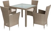 Casaria Polyrattan Tuinset - 4 Stoelen & Tafel 90x90 cm - Beige Grijs