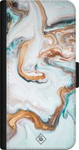 Casimoda® bookcase - Geschikt voor iPhone Xs - Hoesje met pasjeshouder - Marmer Blauw Kubussen - Blauw - Kunstleer