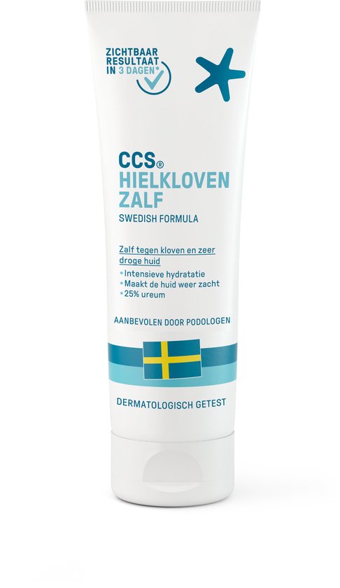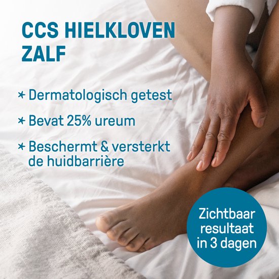 - Intensieve hydratatie - CCS Hielklovenzalf is speciaal voor voeten met zeer droge huid met kloven en eelt. De zalf exfolieert, verzacht, hydrateert en versterkt de beschermende huidbarrière.