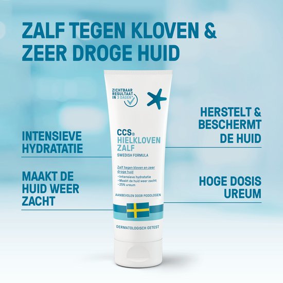 - Voetencreme met 25% ureum - CCS Hielklovenzalf is speciaal ontwikkeld voor zeer droge voeten met kloven en eelt. Bevat een hoge dosis ureum (25%) en lactic acid. Dit helpt je voeten op 4 manieren: het verwijdert dode huidcellen, verzacht, hydrateert en versterkt de beschermende huidbarrière.