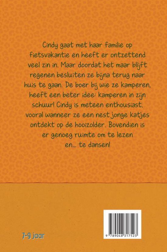 Cindy gaat met haar familie op fietsvakantie, en heeft er ontzettend veel zin in. Maar door de constante regen dreigt de vakantie letterlijk in het water te vallen. Bijna besluiten ze terug naar huis te gaan, maar de boer op wiens erf ze logeren, heeft een beter idee: kamperen in zijn schuur! Cindy is meteen enthousiast, vooral wanneer ze een nest jonge katjes ontdekt op de hooizolder. Bovendien is er genoeg ruimte om te lezen, en... te dansen!