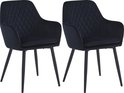 Colenis® - Laura Eetkamerstoel - Set Van 2 - Zwart - Velvet - Design - Industrieel - Met armleuning