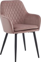 Geschreven bij: Colenis® - Laura Eetkamerstoel - Set Van 4 - Roze - Velvet - Design - Industrieel - Met armleuning