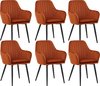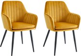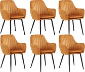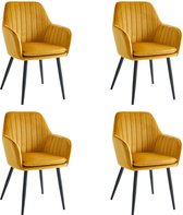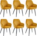 Colenis® - Lavinia Eetkamerstoel - Set Van 6 - Okergeel - Velvet - Industrieel - Met armleuning