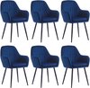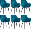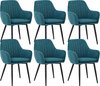 Geschreven bij: Colenis® - Lavinia Eetkamerstoel - Set van 6 - Blauw - Velvet - Industrieel - Met armleuning