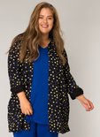 COLLETTA blouse stippen print, productcode 9000151, maat 3(52), met een adviesprijs van 94.95. COLLETTA blouse stippen print is een gewoon basis model met kraagje en knoopsluiting. Het model laat je zien hoe leuk hij staat als je hem opendraagt met een singlet eronder, 9000156 (http://grote-maten-kleding/colletta-uni-singlet-9000156/?colorspace-blue). Hij is gemaakt in een mooie viscose tricot met stretch. In het voorpand zitten zakken.