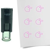 CombiCraft stempel of stempeltje van een wijzen naar links. Stempel bevat Roze inkt en is 1cm rond. Stempel kan gebruikt worden voor stempelen van een spaarkaart of stempelkaart. Stempel bevat een intern inktkussen, dus er is geen extern inktkussen nodig.
