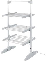Ik was op zoek naar een echt degelijk droogrek. De meeste droogrekken die een paar tientjes kosten zijn zelfs dat niet eens waard: binnen no time buigen de flinterdunne 'draden' door of breken zelfs af. Daarom wou ik nu iets degelijks hebben dat hopelijk jaren meegaat. Dit droogrek heeft stevige stangen waar je de was overheen hangt. Doordat deze elektrisch verwarmd worden is de was een dag eerder droog dan normaal, zonder dat ze met kracht rondgeslingerd hoeven te worden zoals in een droger (waardoor de was sneller slijt).