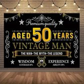 Deze set bevat 16 papieren servetten 50 jaar Vintage Dude. Deze zijn ongeveer 33 x 33 cm en zijn zwart met rode randen. De servetten zijn geprint met "Aged 50 years dude" en "The man, the myth, the legend" in beige kleuren letters. Deze servetten zijn ideaal voor een 50ste verjaardagsfeest.
